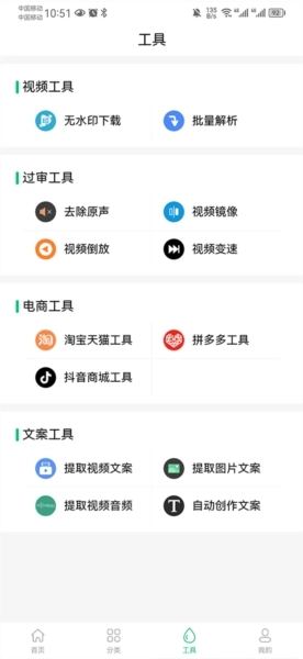 5,视频处理功能:涵盖一键去除水印、MD5转码等视频剪辑相关功能,助力提升原创视频的品质。