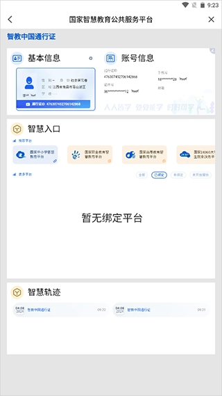 完成账号注册后,需要进入个人中心页面,找到并点击“智教中国通行证”选项,完成平台绑定操作。