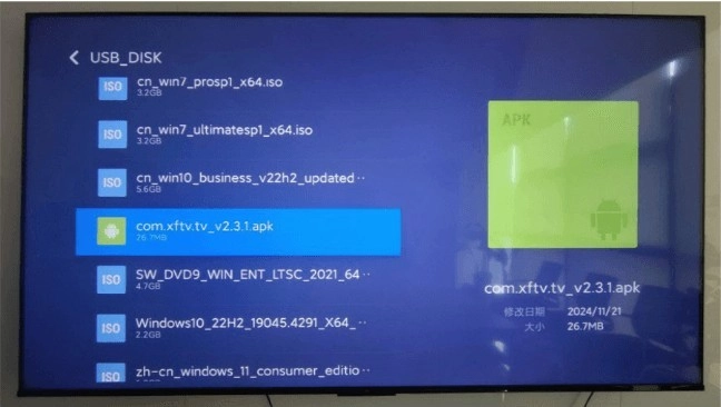 找到你保存的“小飞电视”的apk安装包文件点击