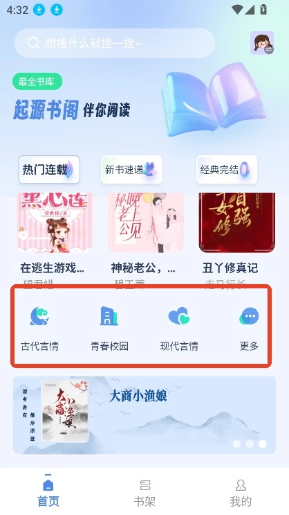 起源书阁是一款免费的小说阅读应用,拥有海量小说资源,涵盖娇妻、腹黑、霸总、穿书文等多种类型。用户可以根据自己的喜好筛选书籍,并将喜欢的书收藏到书架中进行整理。