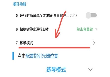 关闭设置光圈位置的悬浮窗,开启练琴模式,并将指引动画设置为自动点击模式。