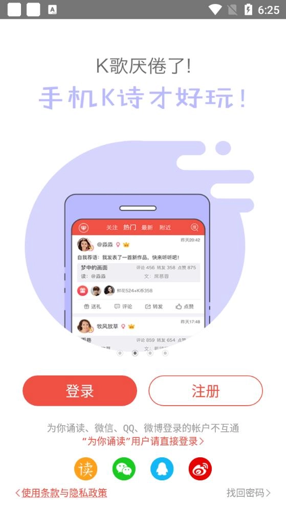 当你对喧闹的K歌感到厌倦时,不妨尝试一下安静而富有诗意的K诗!全民K诗不仅拥有丰富的诗词文本和动听的背景配乐,还具备智能打分系统和声音优化功能,让每个人都能成为“诗意主播”。无论你是想在平台上展现声音的魅力,还是通过朗读来陶冶情操、减轻压力,全民K诗都是一个十分理想的选择。沉浸在诗歌的世界里,K出你的个人风采,K出传统文化的魅力。