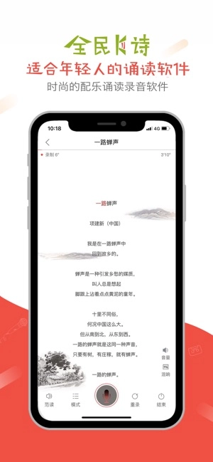 模拟K歌的操作流程,为朗诵配上合适的背景音乐,再融入评分系统,把传统的朗读转化成“玩诗”这种新颖的形式。