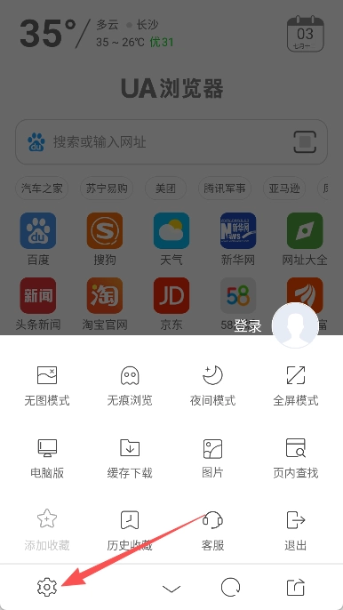 3、在弹出的窗口中点击设置图标,进入设置页面。