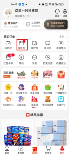 3、找到订单:在个人管理中找到并点击【我的订单】,然后点击【待发货】,进入待发货订单列表。