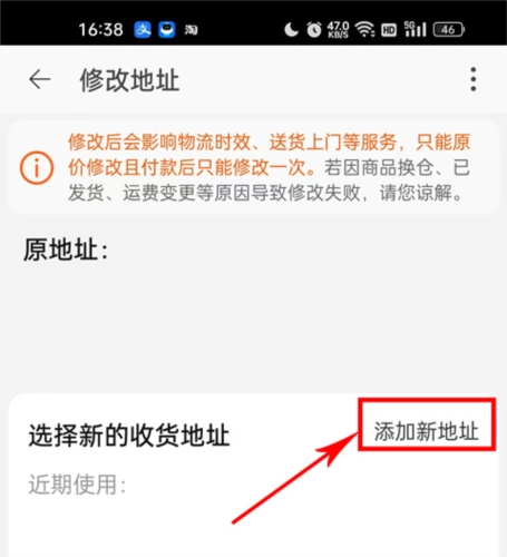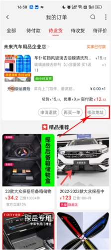 在订单详情页面找到并点击【修改地址】选项,进入地址修改页面。