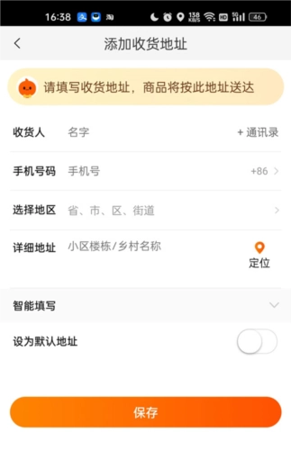 5、保存修改:修改或添加完新的收货地址后,确认信息无误后点击【保存】按钮,完成收货地址的修改。