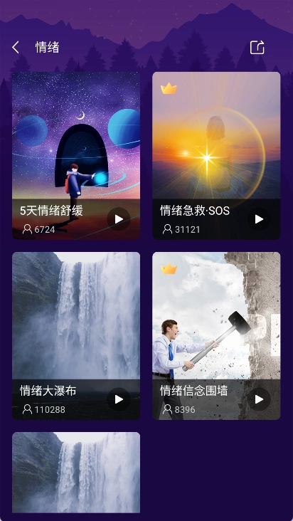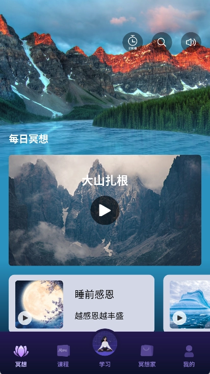 2、随即打开应用,在主页中用户可以选择各种背景音乐进行冥想助眠。