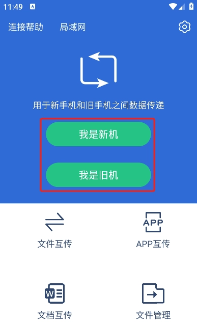 3、打开互传换机助手,选择旧机发送和新机接收。