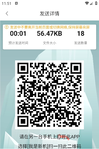 5、旧手机生成热点二维码,新手机扫描该二维码建立连接。