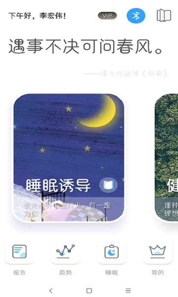 传统冥想与脑科学技术相结合,让冥想变得更加简单,帮助用户快速抓住冥想的感觉。每天晚上入睡前,进行一次冥想,学会总结每一天精彩的生活。系统会根据用户当前状态,进行语音引导,我们将冥想分成4个区域,发散区、放松区、潜意识区、睡眠亚I期,每个状态都将会有语音提醒并且帮助用户进入下一个阶段。