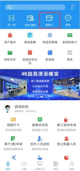 首页点击“全部”,进入全部应用界面,点击对应服务即可直达相关功能服务,资讯中心.行政办公.教育教学.科研服务.人事服务等各种办事服务应有尽有,清晰可见