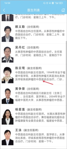 3、往下翻,选择其中一位医师,然后点进她的主页。