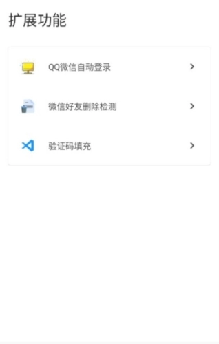 目前我们推出了三项扩展功能,分别是验证码自动填充、微信好友删除检测以及QQ/微信自动登录。