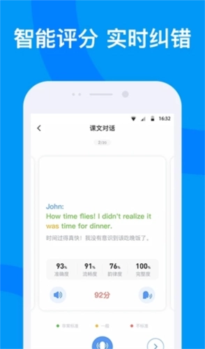 5、依据用户朗读的英语句子,对其英语水平进行检测,检测维度涵盖准确度、流畅度、韵律度与完整度四个方面。