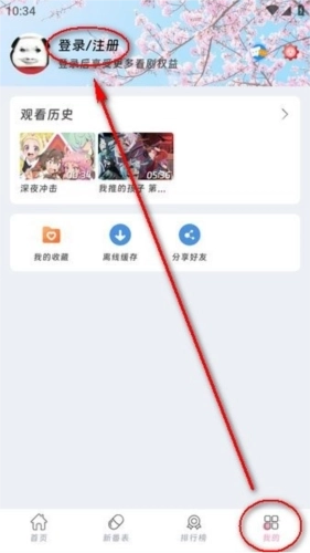 打开咕咕番应用后,点击界面右下角的“我的”选项,接着找到页面顶部的“登录/注册”按钮并点击它。