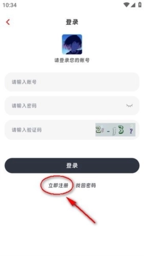 进入页面后,点击“登录”按钮下方的“立即注册”选项,具体位置可参考图示;