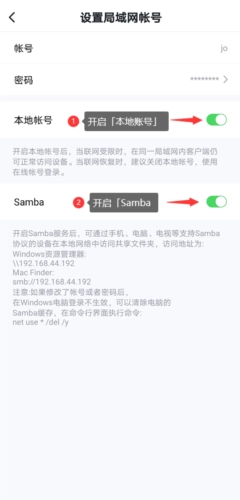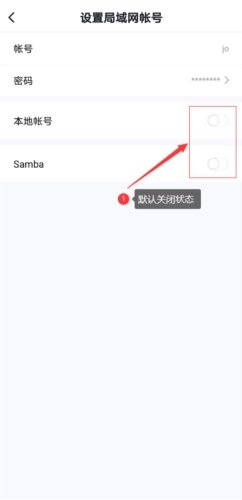 3、完成设置后,我们能看到当前本地账号以及Samba均处于默认关闭的状态。