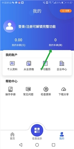 1、打开畅运应用并完成登录,接着进入【我的】页面,点击【我的车辆】选项来完成车辆绑定操作