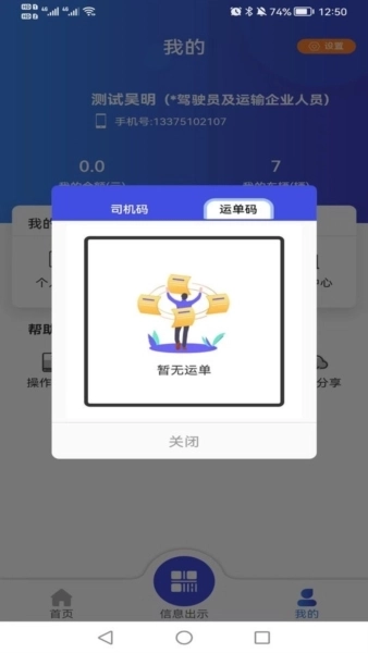 3、货物交接环节,可点击底部中间的【信息出示】按钮完成扫码交接操作。
