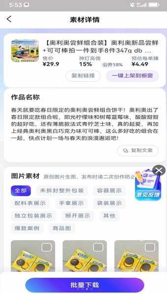 浏览详情页面的素材信息,能够及时了解素材名称与图片资源。