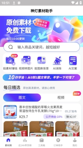 -每日更新图片、视频、文案等各类素材,千万别错过!我们主打免费功能,使用时也没有格式限制哦~