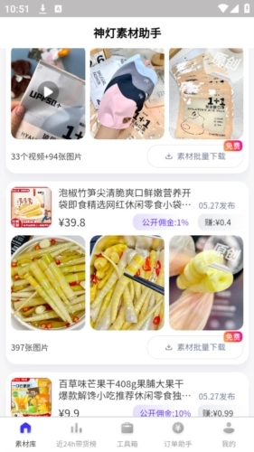 输入各类商品的关键词,以此查找相关商品的素材资源。