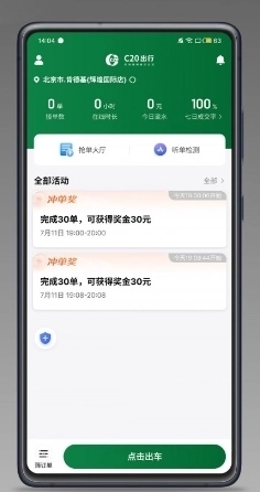 C20快车司机端为网约车师傅打造了便捷、智能且高效的接单平台。借助智能派单、实时定位、专业客服支持等功能,司机能更轻松地获取订单,将乘客安全送至目的地。无论是可视化的操作界面设计,还是精准营销方面的支持,都让司机的工作更为顺畅高效,从而拥有稳定的收入来源。