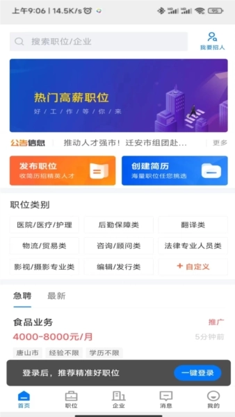 迁安人才网是一款专门面向求职者的招聘应用,致力于为用户提供丰富的招聘信息,覆盖众多职业领域。在该平台上,您能够轻松高效地寻觅到理想职位,其人性化的设计理念让操作简便易行,带来优质的用户体验。同时,迁安人才网软件支持一键投递简历功能,为您带来便捷的求职体验。欢迎有兴趣的朋友们使用。