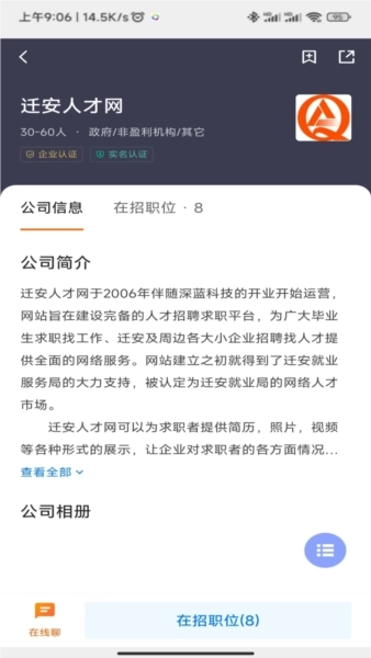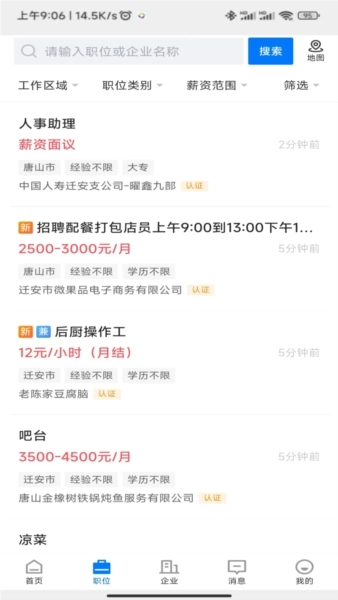 迁安人才网是一款功能强大的招聘软件,为求职者提供全方位的求职支持。借助个性化职业规划功能,用户能更清晰地规划未来的职业发展方向。平台运用职场心理学数据来精准匹配职位与人才,并且提供全天候在线服务,以便满足用户随时求职的需求。通过快速将用户简历发送给企业,有效缩短求职时间、降低求职成本。快来使用迁安人才网,开启高效又便捷的求职之旅吧!