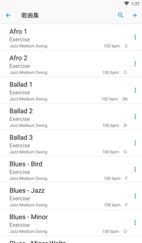 •显示每首乐曲中的和弦建议音阶以帮助即兴
