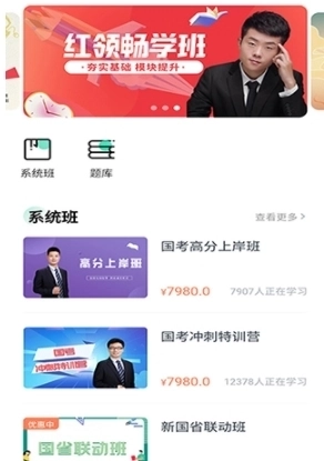 3、名师课程。邀请公考领域资深培训名师亲临授课指导,提供直播与点播两种学习模式供您选择。