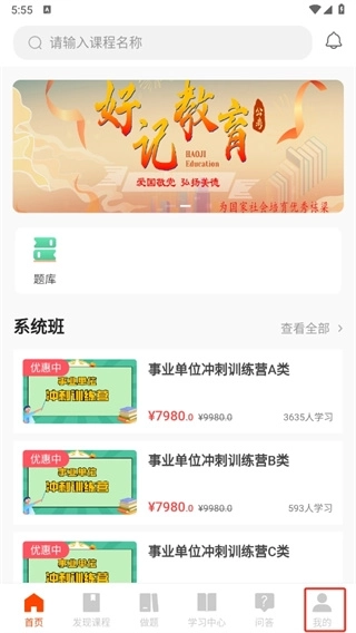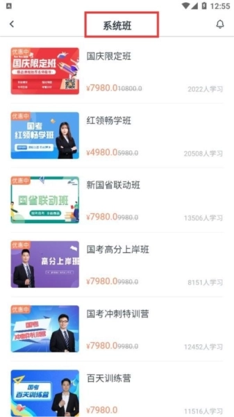 2、点击进入系统班后,可根据自身需求选择相应板块,完成报班并开展学习。