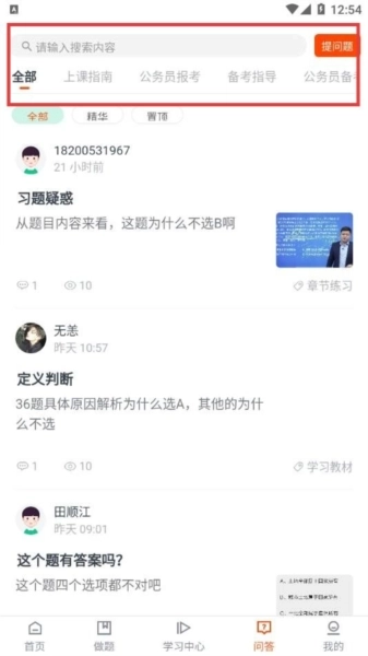 3、进入问答板块后,你可以提出自己不懂的问题与他人交流,也能搜索相关问题来寻找答案。