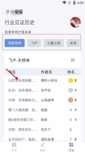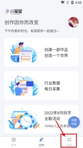 1、在小黑屋里可以查看其他作者创作的小说,操作方式是点击页面上的“行业”选项,进入对应的页面即可。