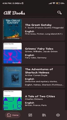 Myne是一款很好用的书籍阅读软件,堪称十分出色的古登堡计划书籍工具,里面大量书籍资源都是免费获取的,只需在搜索引擎里输入关键词,相关书籍信息就会弹出,之后点击即可;并且这款软件和普通书籍工具不同,由于它接入了古登堡计划来获取书籍资源,软件界面整体也相当清爽,采用清新的画面风格,欢迎点击体验!