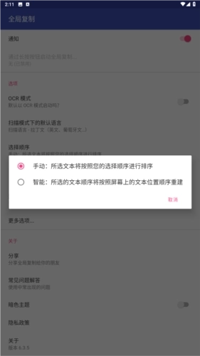 这款应用的全局复制粘贴功能十分强大,能让你轻松复制所需文本,并且它完全免费,不会有任何广告干扰。它不仅可以在普通模式下复制文本,还能借助字符识别技术(OCR),从普通模式无法操作的应用里提取文本。