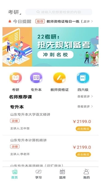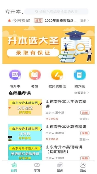1,丰富班次安排:导学班、基础精讲班、考前押题班、习题解析班等,助力用户理清思路,系统学习。