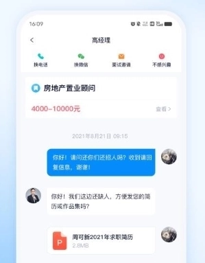 3、高效沟通:随时随地与BOSS开聊,面试邀请线上完成,求职速度大大提升。