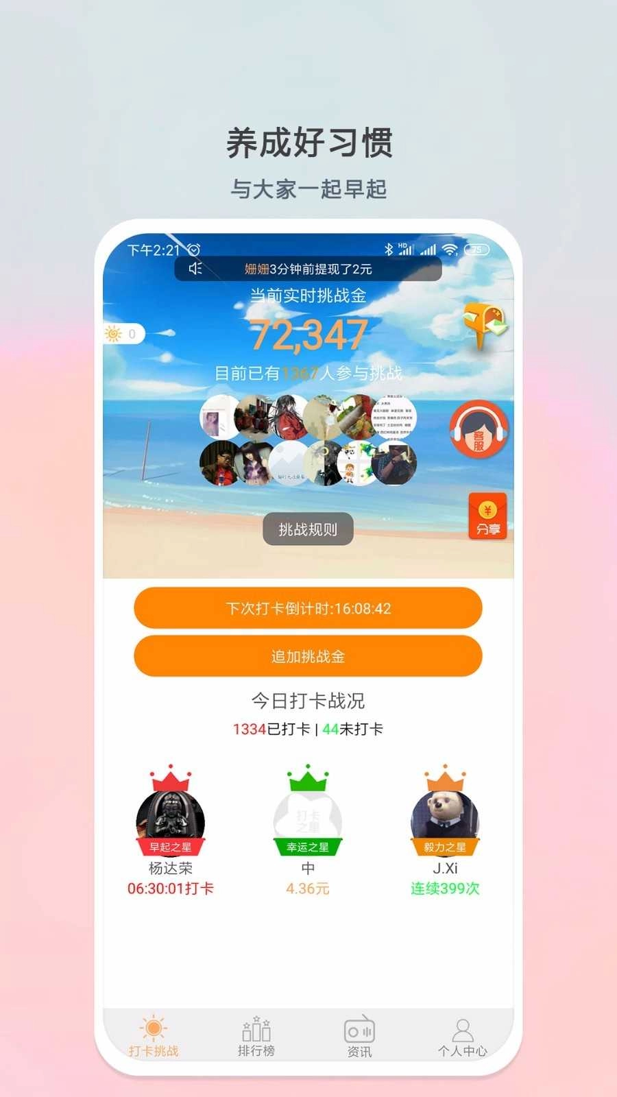 3.【早起打卡】坚持每日早起,于六点半准时完成打卡,成功打卡即可获得相应奖励