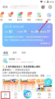 1、在首页上,将页面滑动到最底部会出现一个“更多”选项,点击该选项。