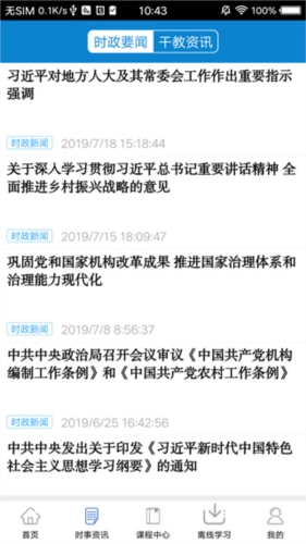 3、除了学习课程,大家还能在资讯界面查看时政要闻和干教资讯。