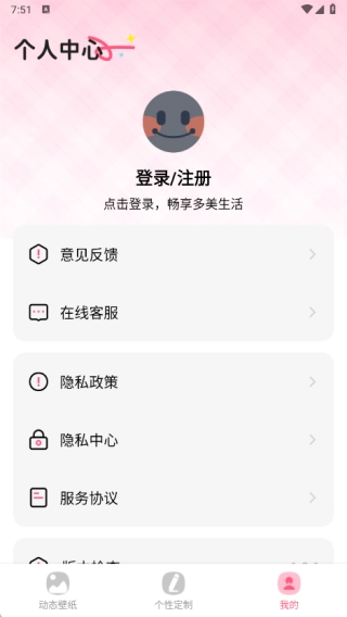 4、在“我的”页面里,用户可以完成登录或注册操作,也能查看隐私协议等相关内容。