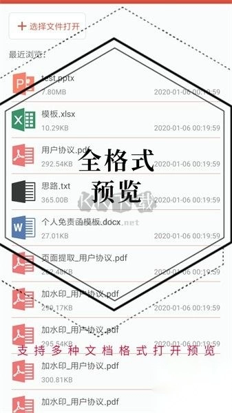 4、该软件支持多种文档格式打开预览,并还可以随时查看最近预览;