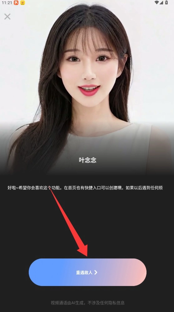 使用念念AI,体验超有趣。能亲手打造虚拟人物,既可以上传照片,也能让系统自动生成。与虚拟角色聊天,感觉格外自然,仿佛在和真人交谈。而且每个角色都有专属的朋友圈动态,闲暇时翻阅一番,趣味十足。无论想聊什么话题,哪怕半夜失眠,都能找到“人”畅聊。操作更是简单便捷,完成注册就能开启玩耍之旅。