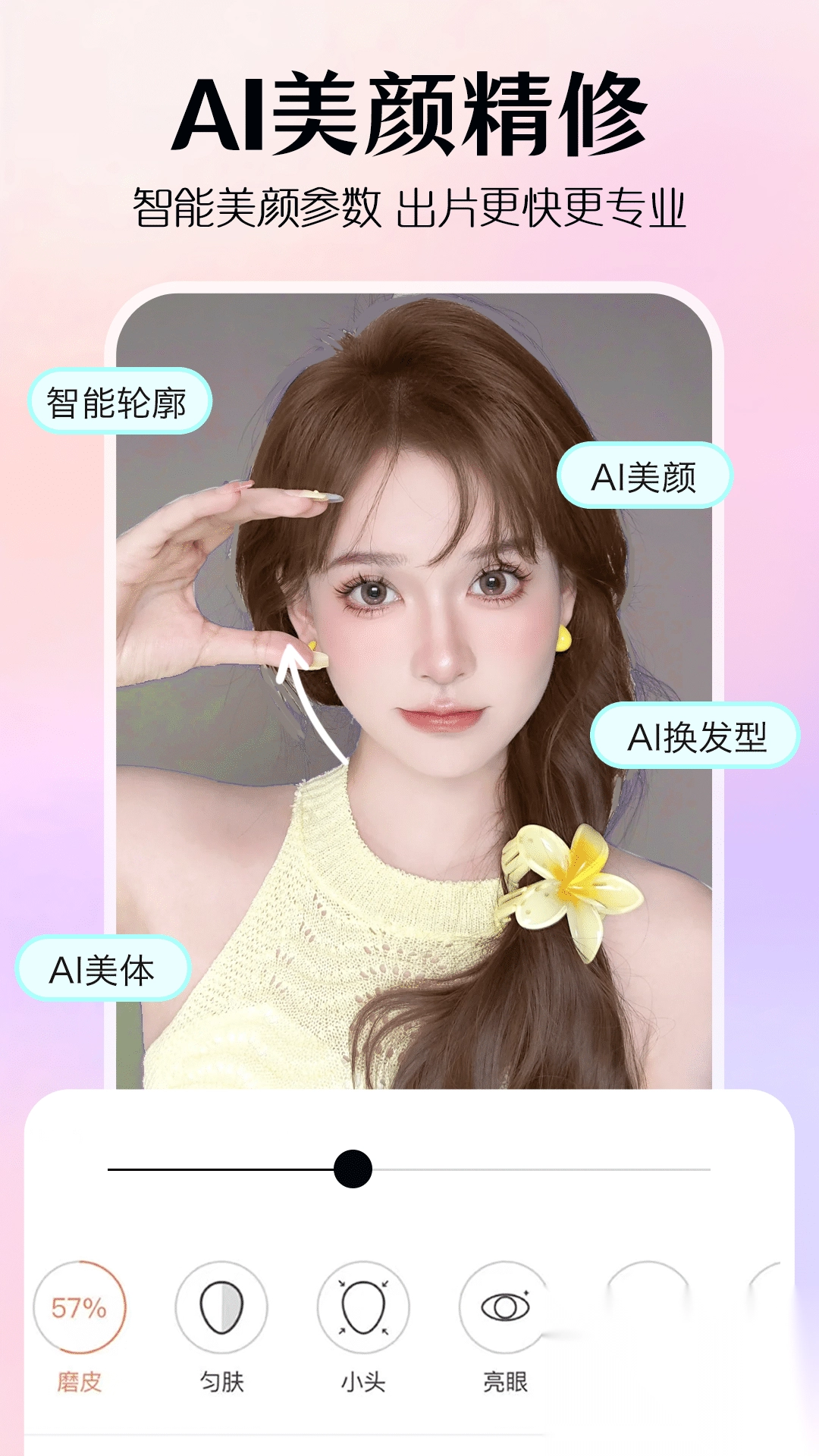 1. 可精准识别人脸照片,依据人脸的五官特点、肤色及肤质等各类信息,借助先进的人工智能算法实施个性化美颜处理。