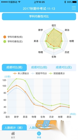 6、查看成绩、排名、学科均衡性、成绩对比、进退步等信息;