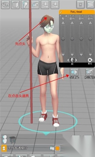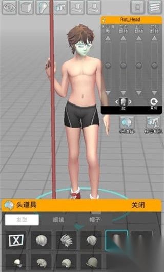 -点击模特头部 → “头部道具” 添加发型;
