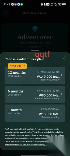 在加入会员界面选择你需要的会员类型和订阅方式,点击。
