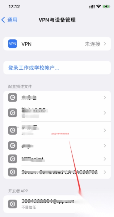 这个时候 打开 手机设置 > 通用 > VPN与设备管理 然后信任开发者APP即可